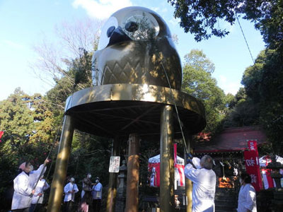 高さ7mの大フクロウ像がありまして、台座のご神木を叩いて参拝すると、