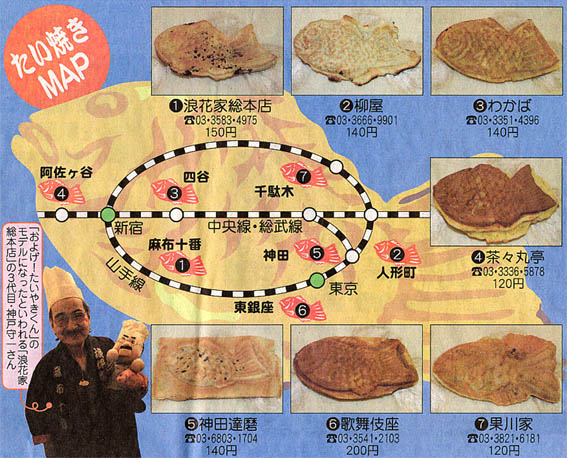 鯛を模した焼き菓子を売り出したのが始まりとされる。パリッとした薄皮と甘さ控えめの