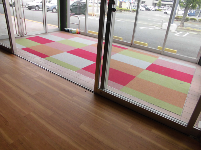 キッズプレイスペースの床もカラフルでかわいいですよ!