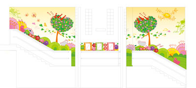 2階への階段室壁面イラストです〜