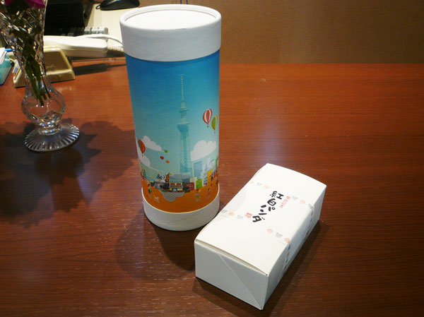 大福が入っている円柱のケースはスカイツリーオリジナル!