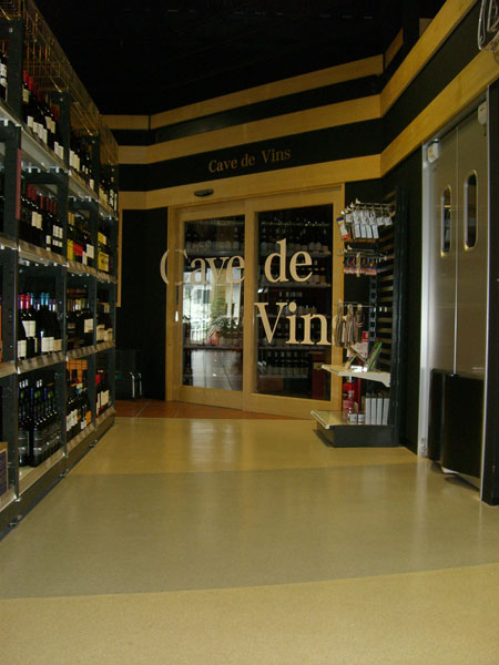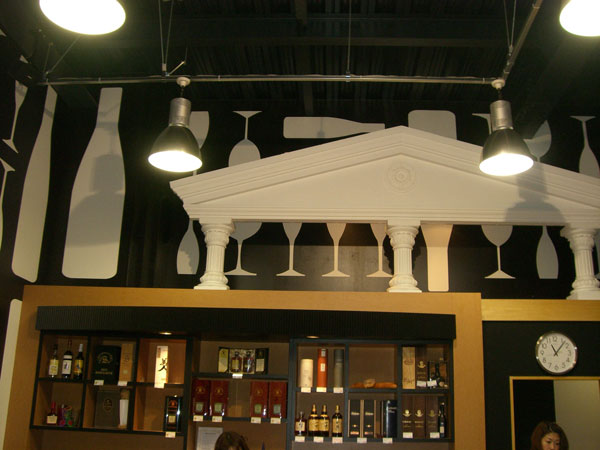 レジ上壁にはワンポイントワイングラスのグラフィックがオシャレ。