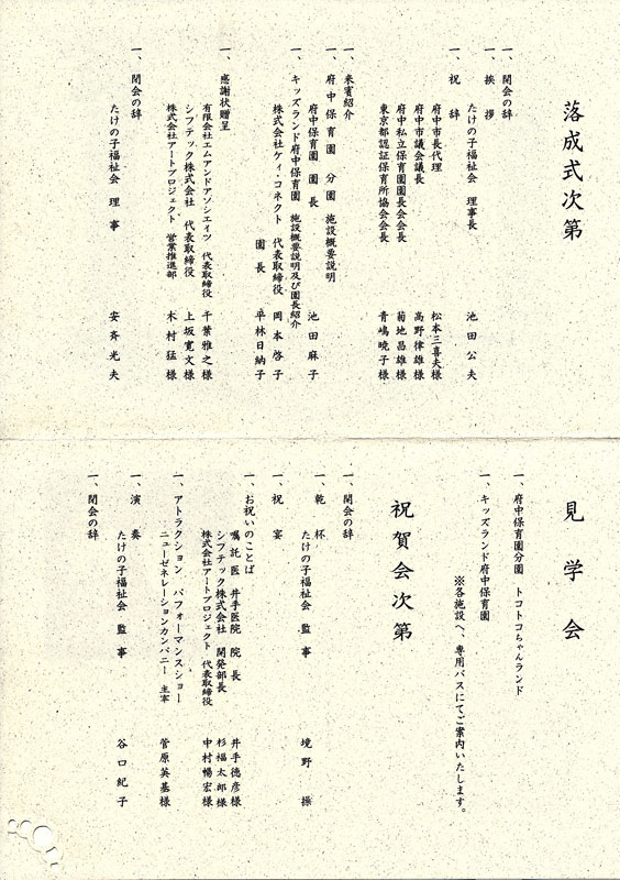 そして、祝賀会次第表です。