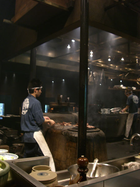 かまどでは信州牛を焼いている。